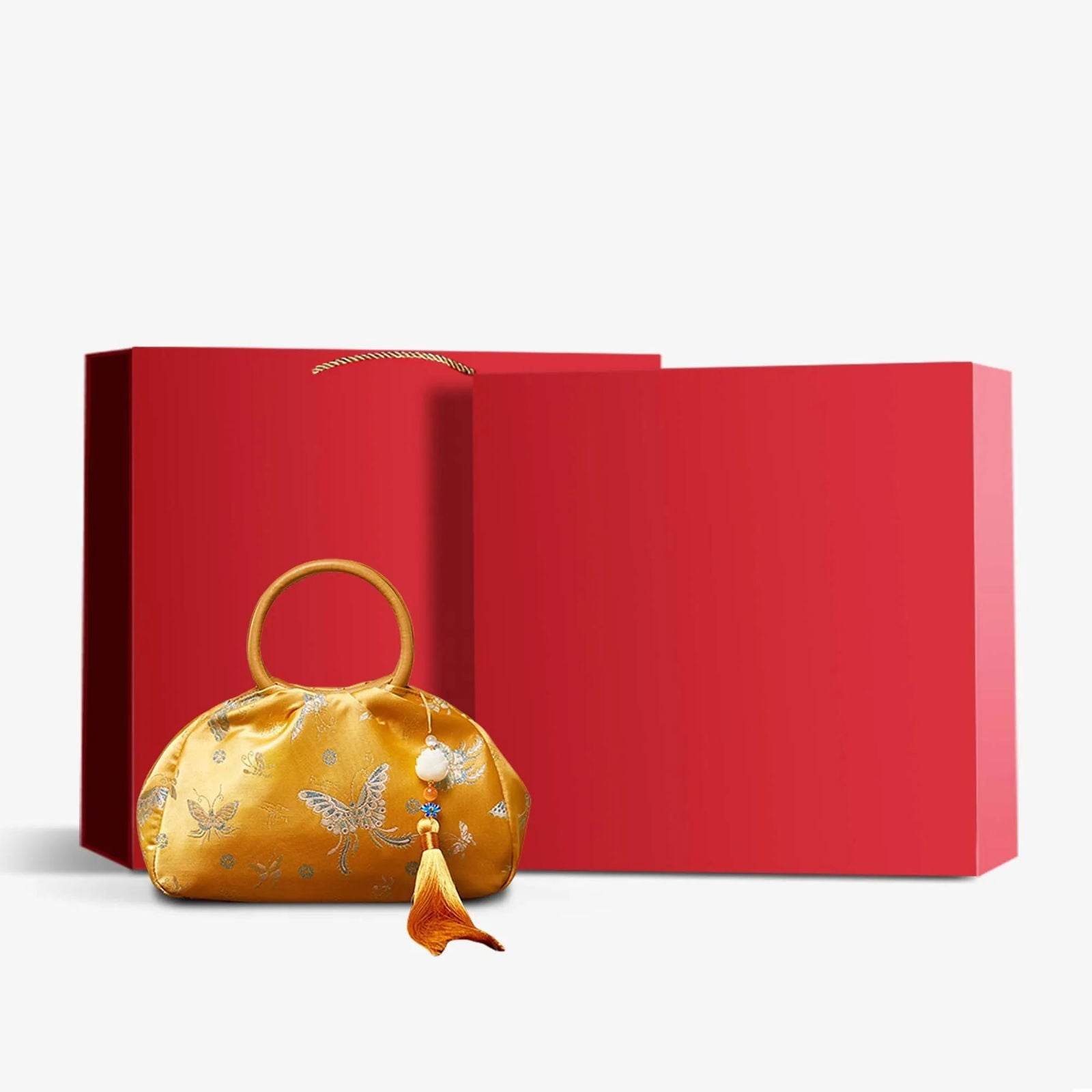 ブロケード中国スタイルバッグ蝶女性高級黄色ハンドバッグ