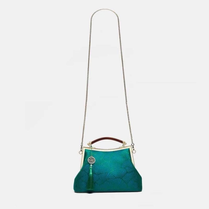 マルベリーシルク グリーン パインリーフ ヴィンテージ キスロック クラスプ バッグ