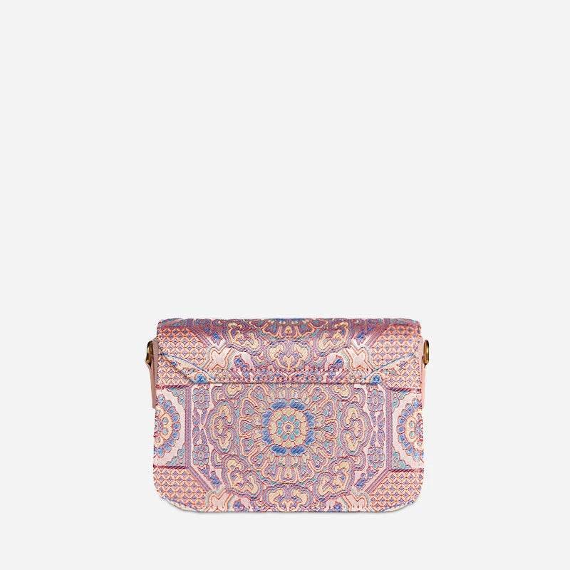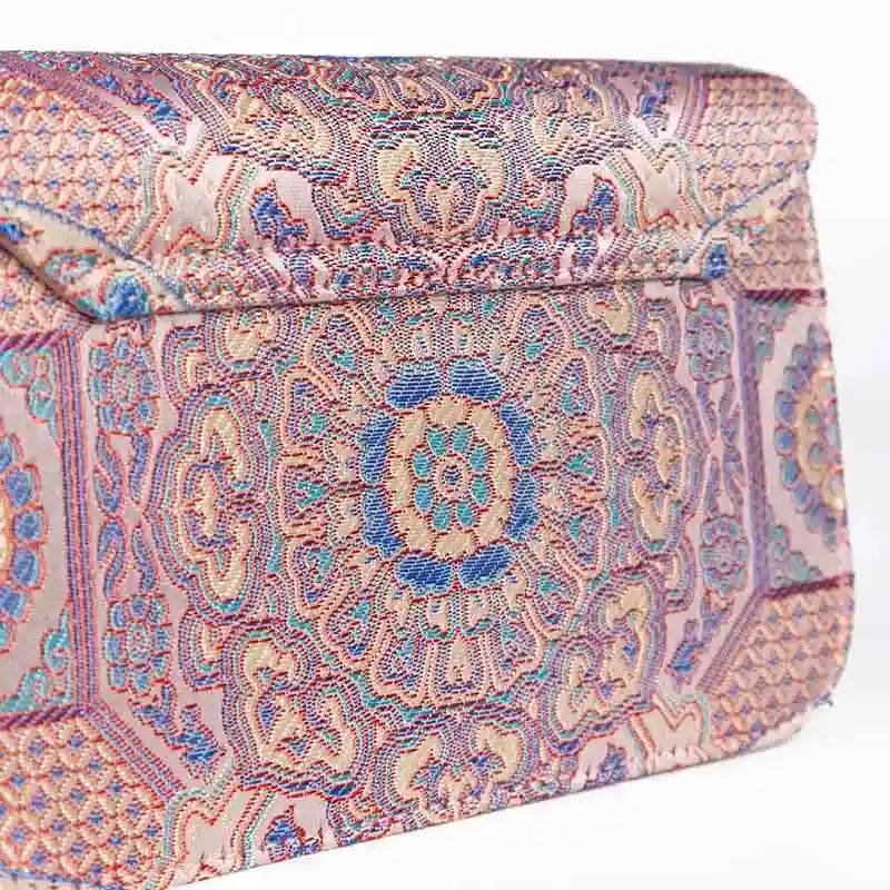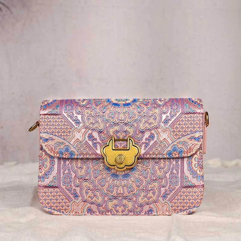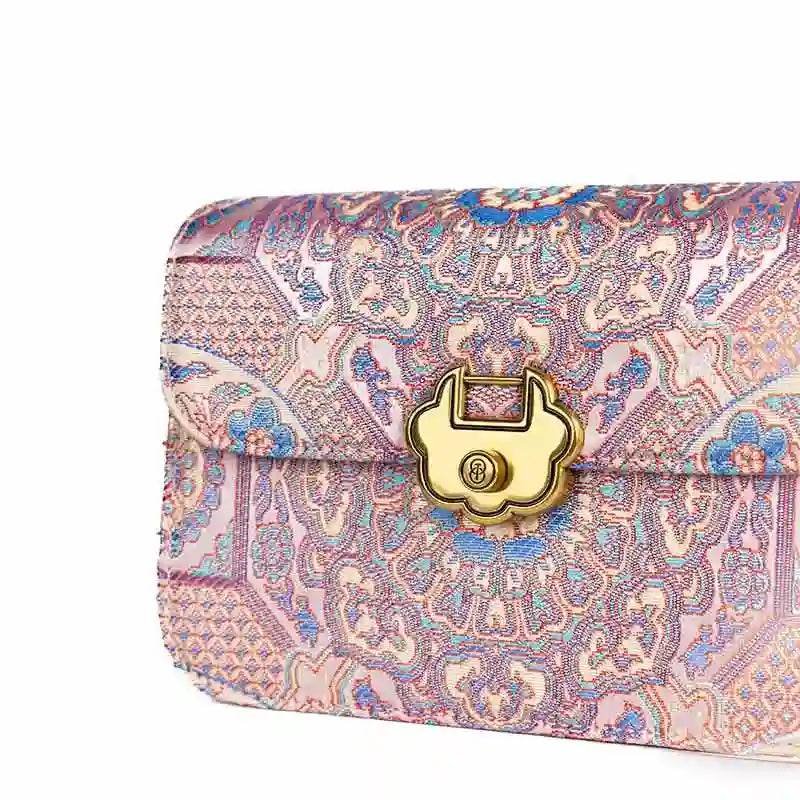 ソング・ブロケード・レザー 高級パウダーピンク・クラッチ・ハンドバッグ