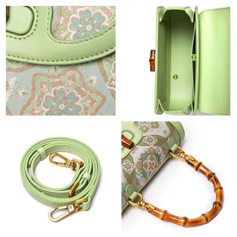 宋錦桑絹竹ハンドル・ハンドバッグ