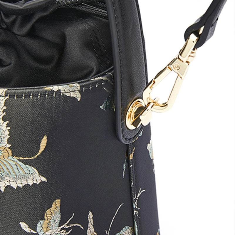 Brocade Black Bucket Bag Designer Butterfly Handbag