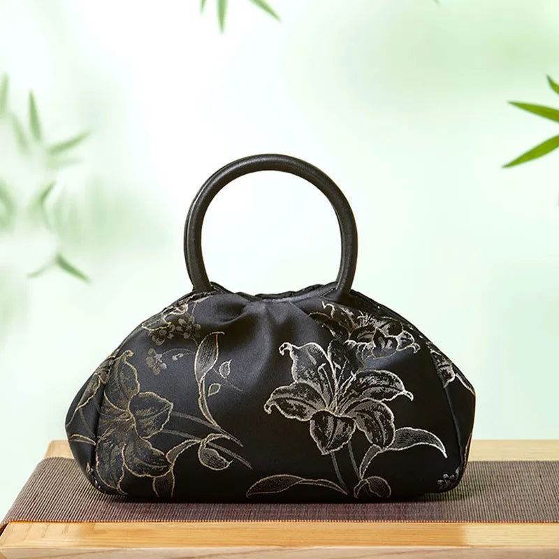 Brocade Chinese Style Bag Black Floral Handbag