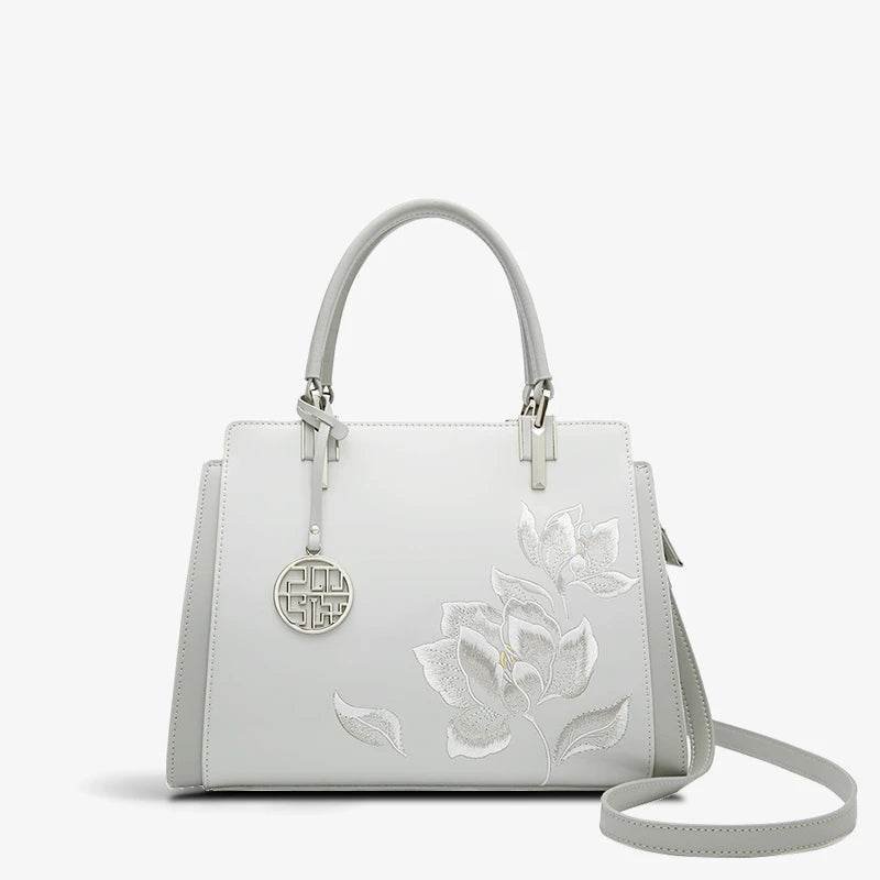 Embroidery Leather Magnolia Crossbody Tote Bag Women Handbag