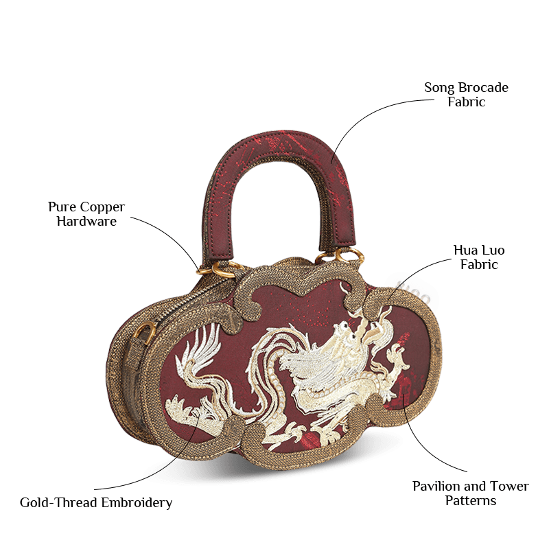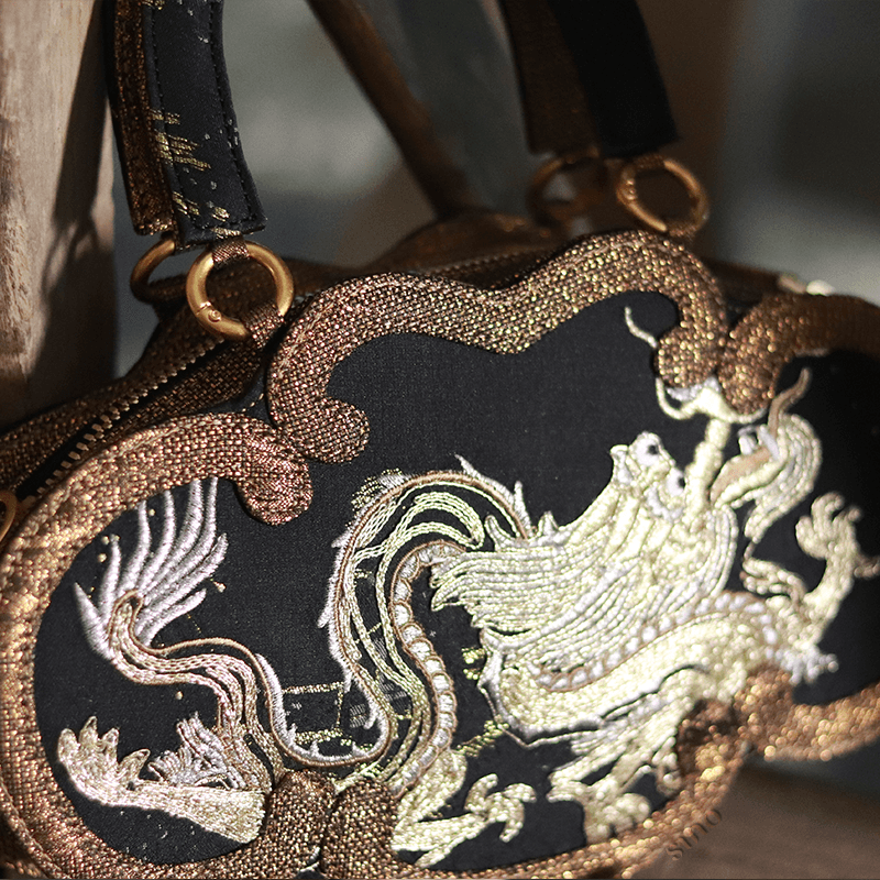 Ultra-Light Ruyi Loong Embroidery Handbag – Recycled Fabric with Hualuo Silk 205g