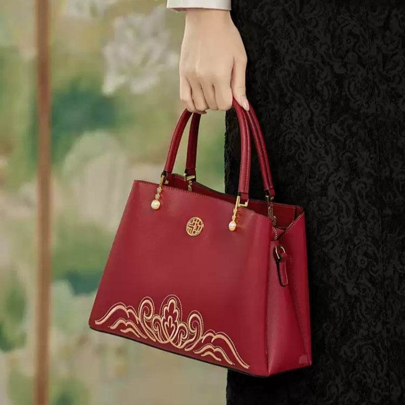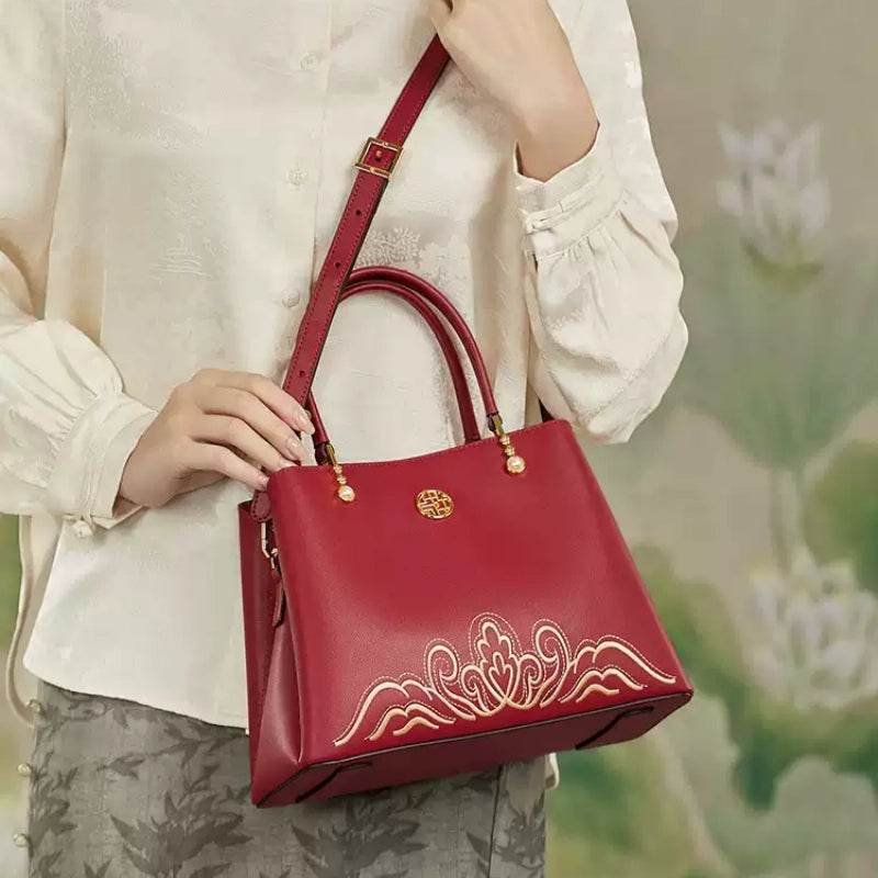Embroidery Genuine Leather Elegant Crossbody Bag